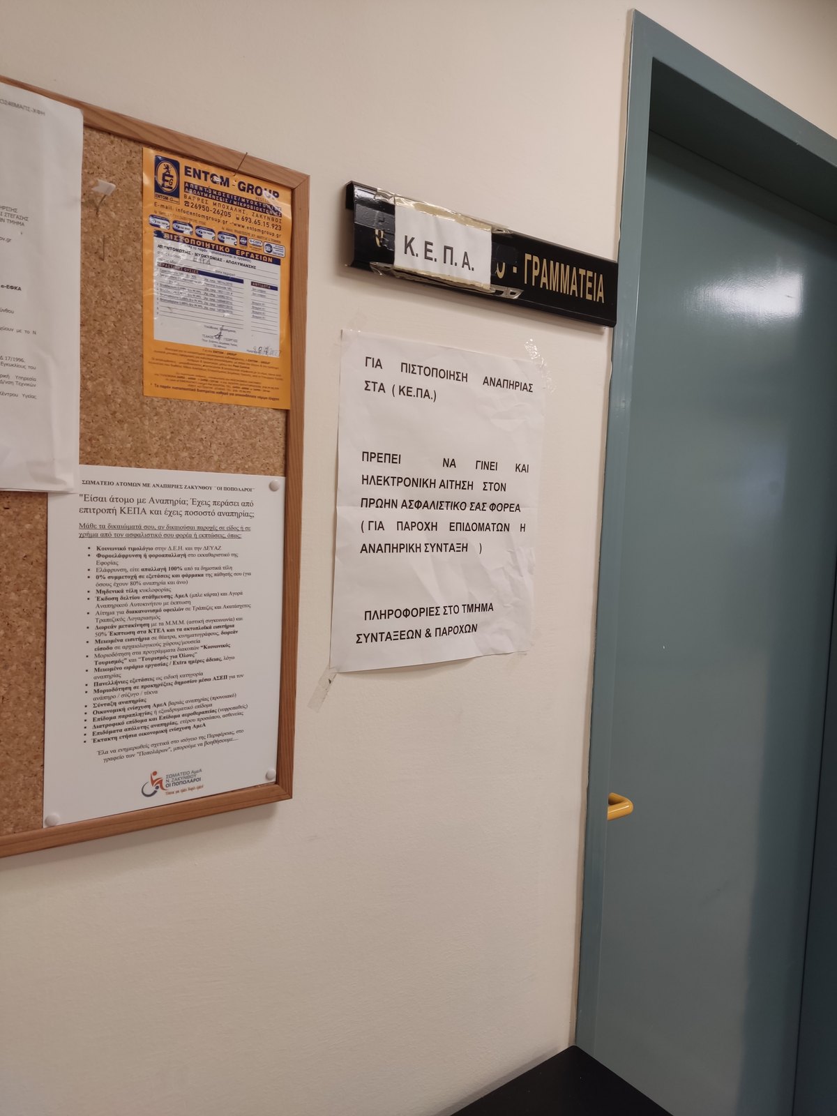 Το Σωματείο καλεί τα Άτομα με πιστοποιημένη αναπηρία από ΚΕΠΑ που χρειάζονται οποιοδήποτε βοήθεια ή επίλυση απορίας σχετικά με τα δικαιώματα τους να προσέλθουν στα γραφεία του Σωματείου στο ισόγειο της Περιφέρειας ή να καλέσουν στο 2695048435, καθημερινώς 09.00 με 13.00.