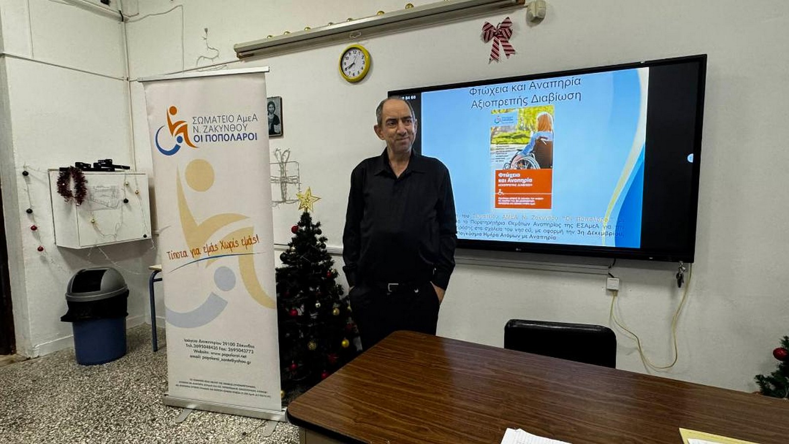 Tην Τετάρτη 03 Δεκεμβρίου 2025, το Σωματείο διοργάνωσε ενημερωτική παρουσίαση σε τμήματα Β' και Γ' τάξης του 2ου Γενικού Λυκείου Ζακύνθου, με θέμα: «Φτώχεια και Αναπηρία, Αξιοπρεπής διαβίωση». Την παρουσίαση έκανε ο πρόεδρος του Σωματείου των Ποπολάρων και εκπαιδευτικός του σχολείου κ. Μπενίσης Μάριος, ο οποίος αναφέρθηκε στα προβλήματα που αντιμετωπίζουν τα ΑμεΑ μετά την δεκαετή οικονομική και υγειονομική κρίση που πέρασε η χώρα και είναι εντονότερα στα ΑμεΑ. Στην παρουσίαση αναφέρθηκαν στους μαθητές/τριες στοιχεία από το 1ο Τακτικό Βαρόμετρο Δικαιωμάτων Ατόμων με Αναπηρία, χρόνιες η/και σπάνιες παθήσεις, σχετικά με την υγεία, την εργασία, τις οικονομικές δυσχέρειες και τον κοινωνικό αποκλεισμό των ΑμεΑ καθώς και οι προτάσεις της ΕΣΑΜΕΑ για την κατά το δυνατόν βελτίωση της ζωής τους.